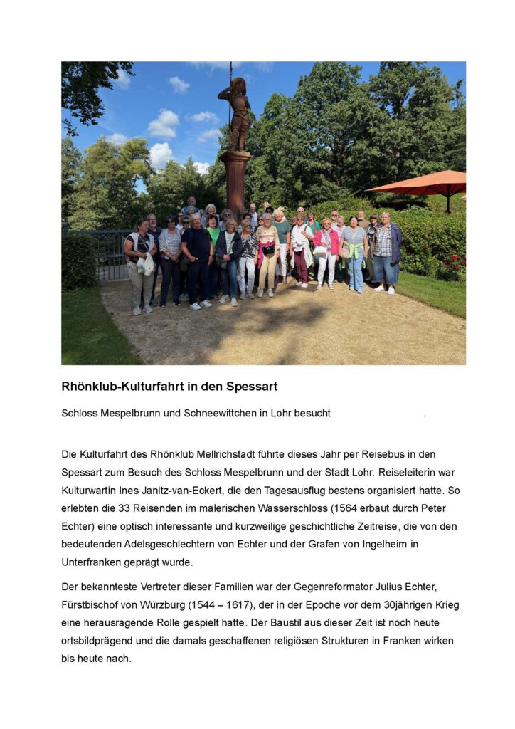 Veröffentlicht am 6. Oktober 20256. Oktober 2025 von 2. VorsitzenderKulturfahrt in den Spessart vom ß6.09.2025